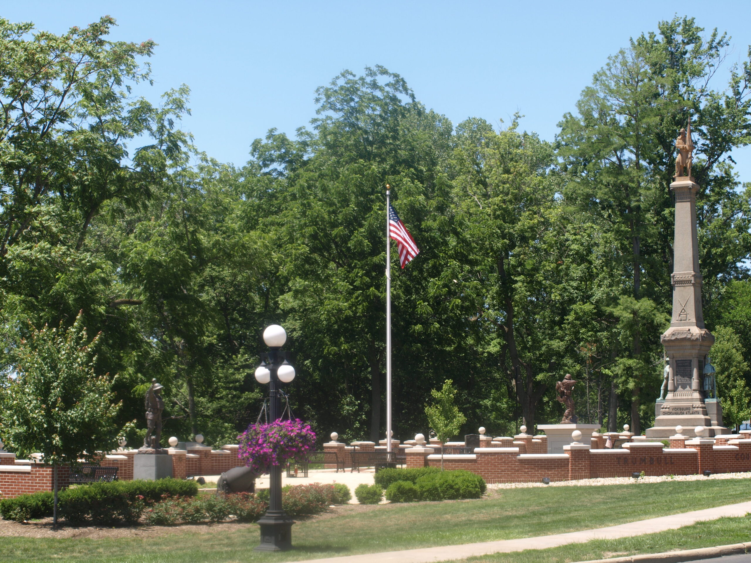 The Women’s Garden is one of Warren’s lesser-known treasures, and always well maintained by the members of the Upton Association, whose handsome 1840s home is just across the street at 380 Mahoning. The park features a sleek, art deco statue representing universal womanhood. A small stream runs through it with a bridge, places to sit, and a nice view of City Hall.