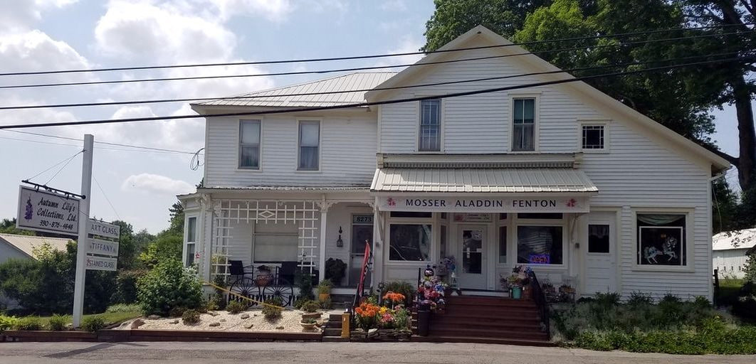 Retailer of a variety of antiques, art glass (including a large selection of Fenton), and lamps.